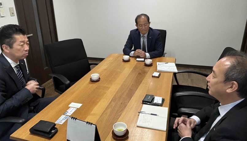 ホットリハビリシステムズ松井一人社長と介護予防の現状と課題について意見交換する、つじ英之衆議院議員・土田のぶよし